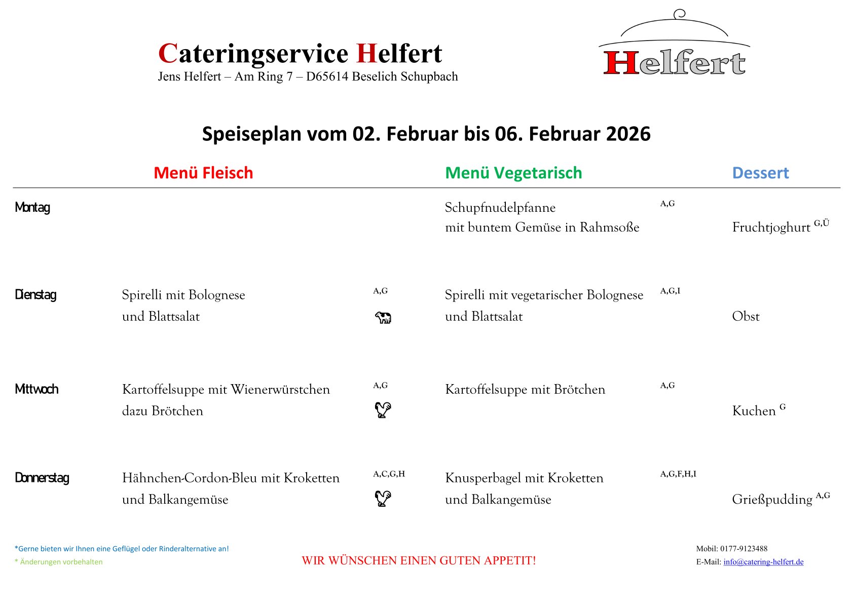 Speiseplan vom 02. Februar bis 06. Februar 2026